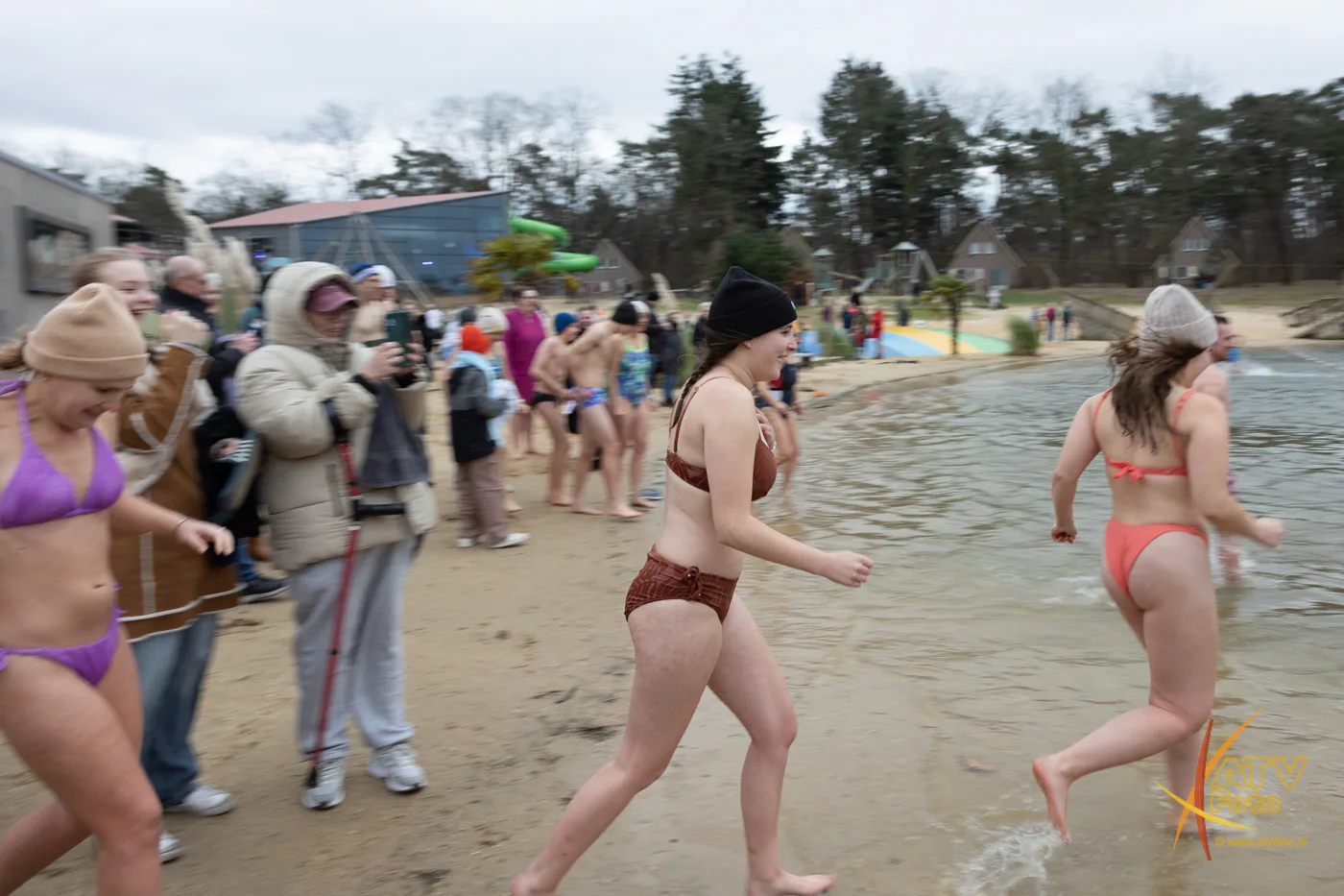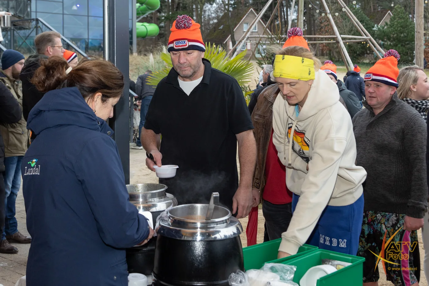 Naar schatting waren er zo’n 100 deelnemers die mee deden aan de Nieuwjaarsduik op landgoed ’t Loo. Helaas door technische problemen verliep het niet helemaal zoals gepland. Waardoor sommige deelnemers te vroeg het water in gingen. Gelukkig waren de problemen vrij snel opgelost alleen toen was eigenlijk iedereen al het water in geweest. Om weer wat op de warmen werd er gedanst op de muziek van Snollebollekes. Wij spraken iemand die normaal naar de Nieuwjaarsduik in Scheveningen gaat, maar omdat deze afgelast was bleef hij nu dichtbij huis. Er stond een straffe wind maar gelukkig hielden we het droog. Na afloop kon iedereen genieten van een bakjes snert of tomatensoep ook was er warme chocolademelk. Wij van ATVfoto wensen jullie een gelukkig en gezond nieuwjaar toe!